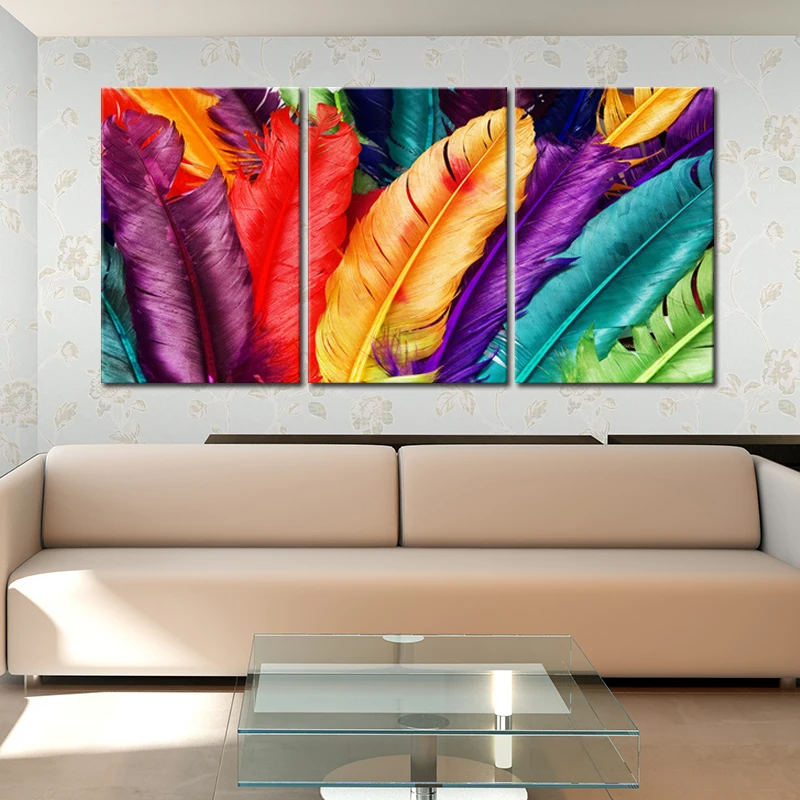 3PCS No Frame Modern Colorful Feather Wall Painting ...